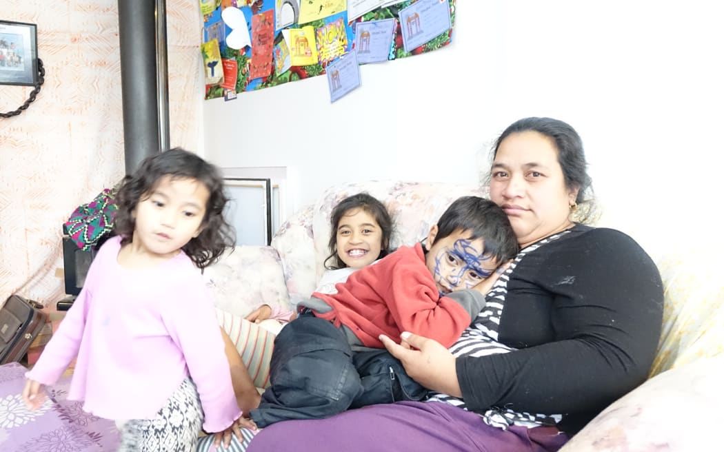 Ioane Teitiota's wife Angua Erika and their three children Photo: RNZ / Lauren Baker