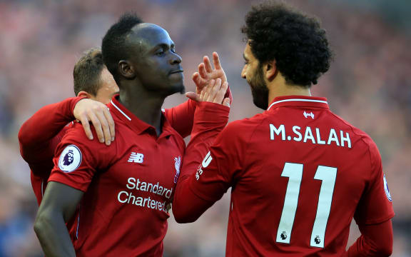 Sadio Mane celebrates his goal with Liverpool teammate Mohamed Salah Photo: Actionplus