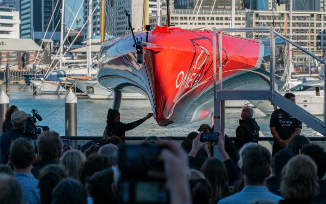 The boat, named Te Rehutai, will be used to defend the 36th America's Cup in just over 100 days' time.